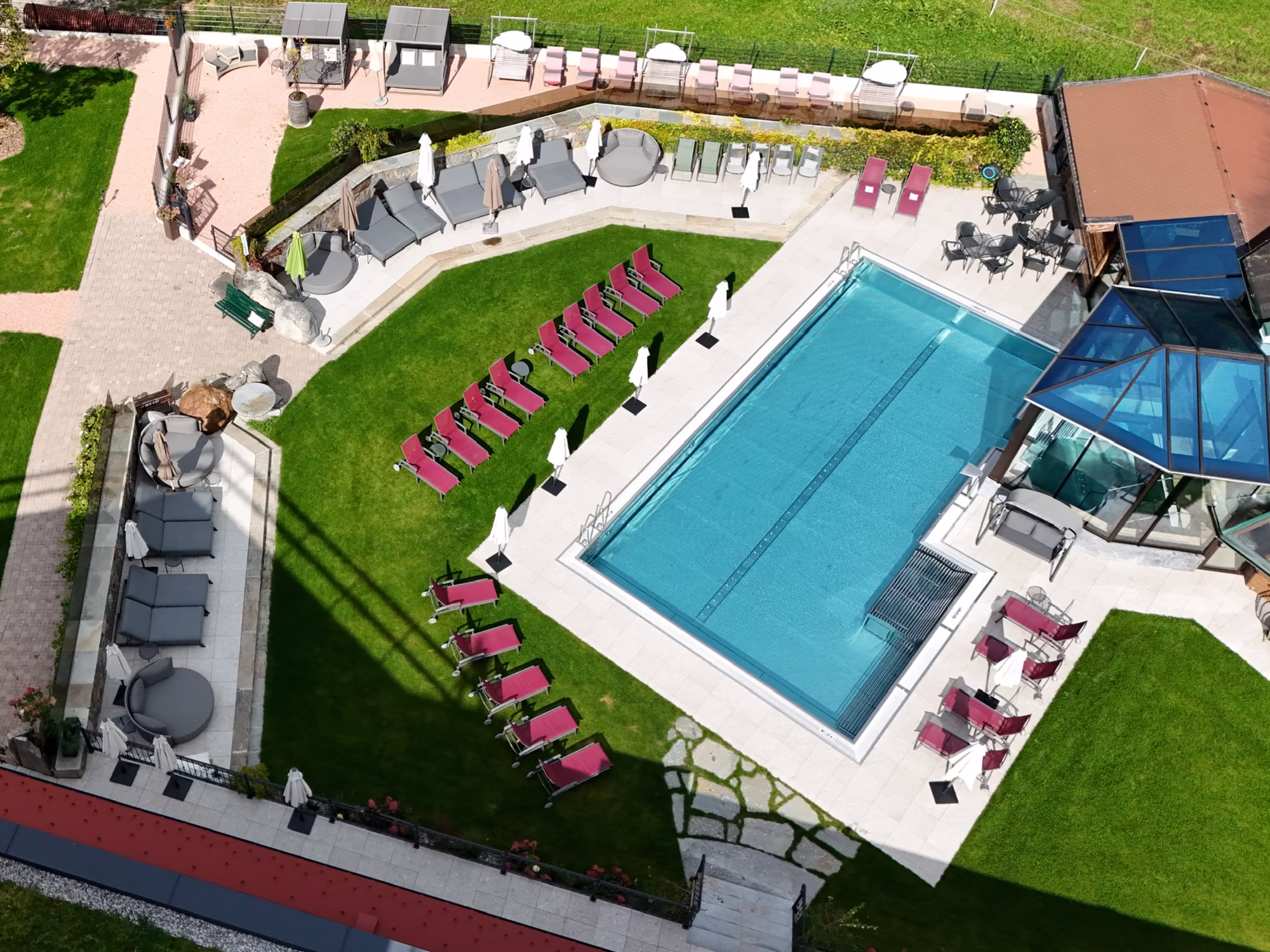 Hier spürst Du, wie die Zeit still steht. Umschlossen von einer eleganten Mauer ist unser Sonnenhof-Garten ein Ort der Ruhe und Geborgenheit. Inmitten dieser Oase plätschert ein Brunnen mit kristallklarem Trinkwasser – so rein, dass jeder Schluck wie ein Geschenk der Natur schmeckt.