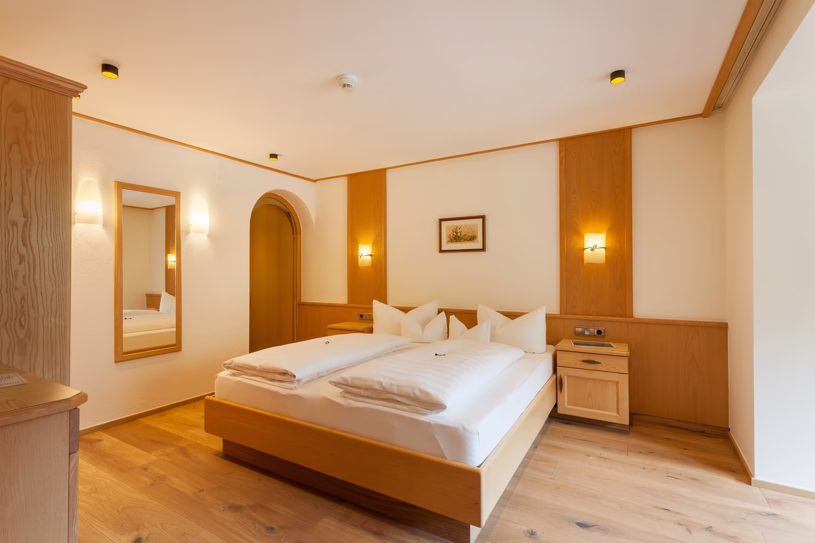 The small family room with two separate bedrooms, a sitting area, and a balcony leaves nothing to be desired with its modern amenities. The charming room in Tyrolean style is the perfect feel-good retreat for the whole family and offers plenty of space to relax, dream, play, and enjoy!